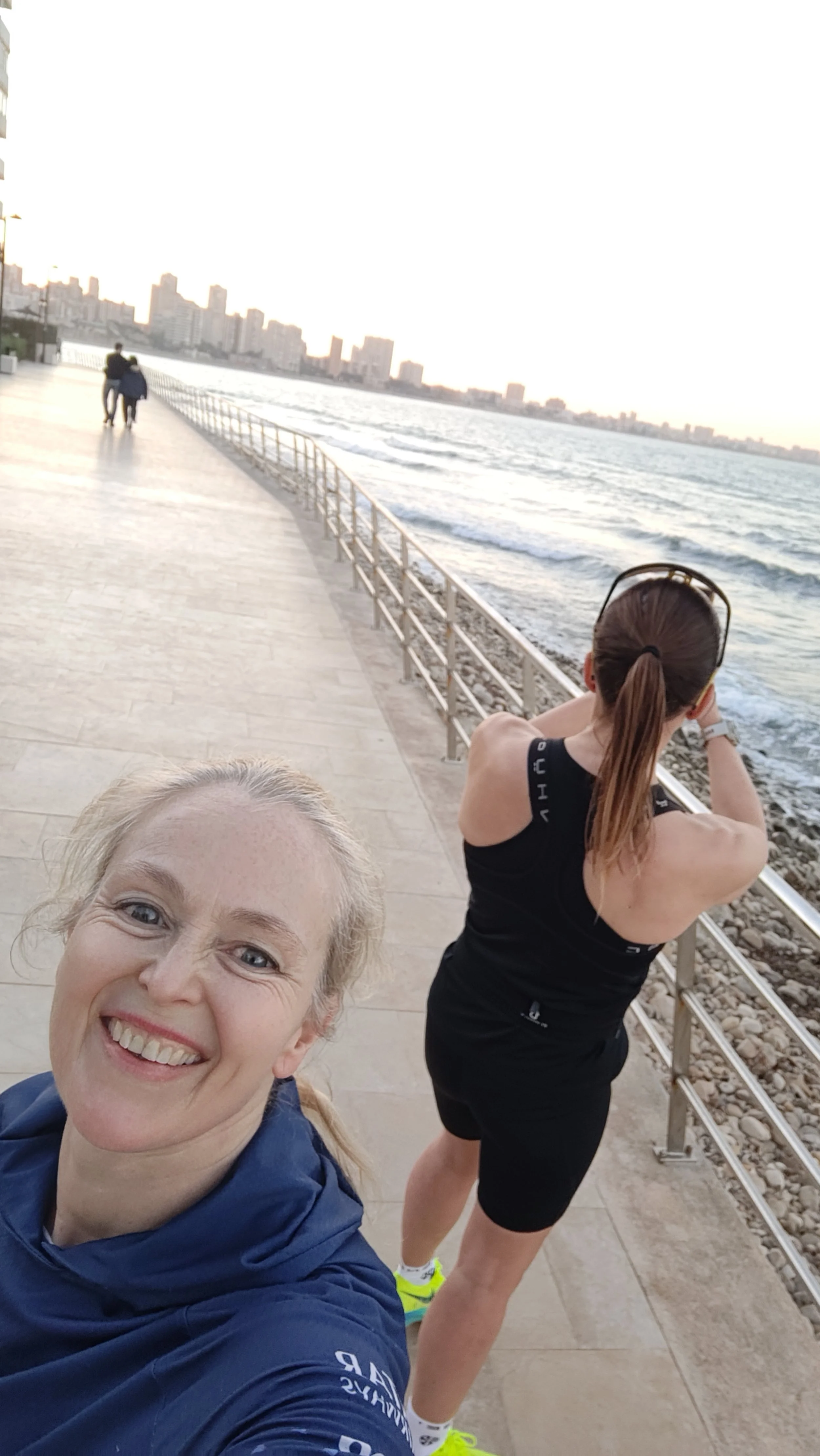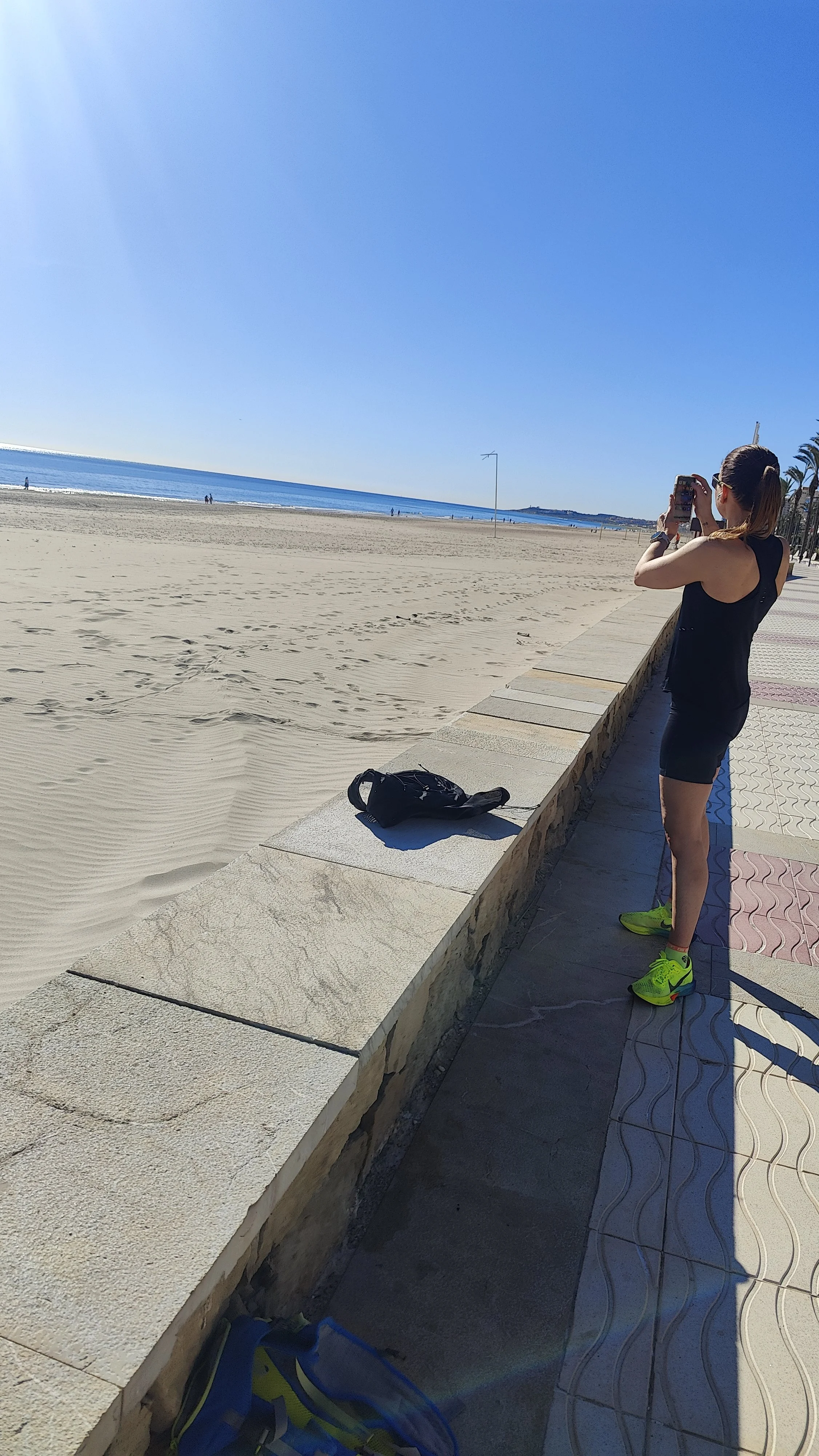 Planen for dagen er 2–3 timer sykkel, ca. 5 mil, og deretter 25 km løp. Stigningsprosentene på slutten – 12–15 % og på det bratteste nesten 20 % – var ikke helt det vi hadde sett for oss, men Ida smiler når vi ser El Campello. Sykkelcomputerne våre hadde andre planer, og sender oss til Busot, et fjell med panoramautsikt.
